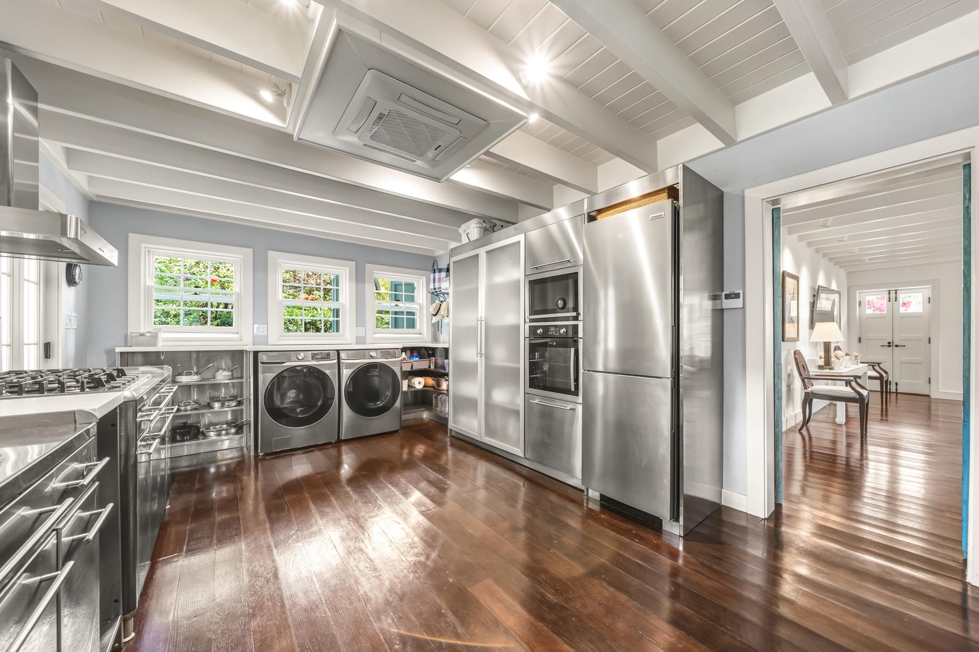 The residence offers approximately 2,200 square feet of thoughtfully designed living space, featuring two bedrooms and two bathrooms. The chef’s kitchen includes a sleek all-stainless design and is fully equipped for island entertaining.