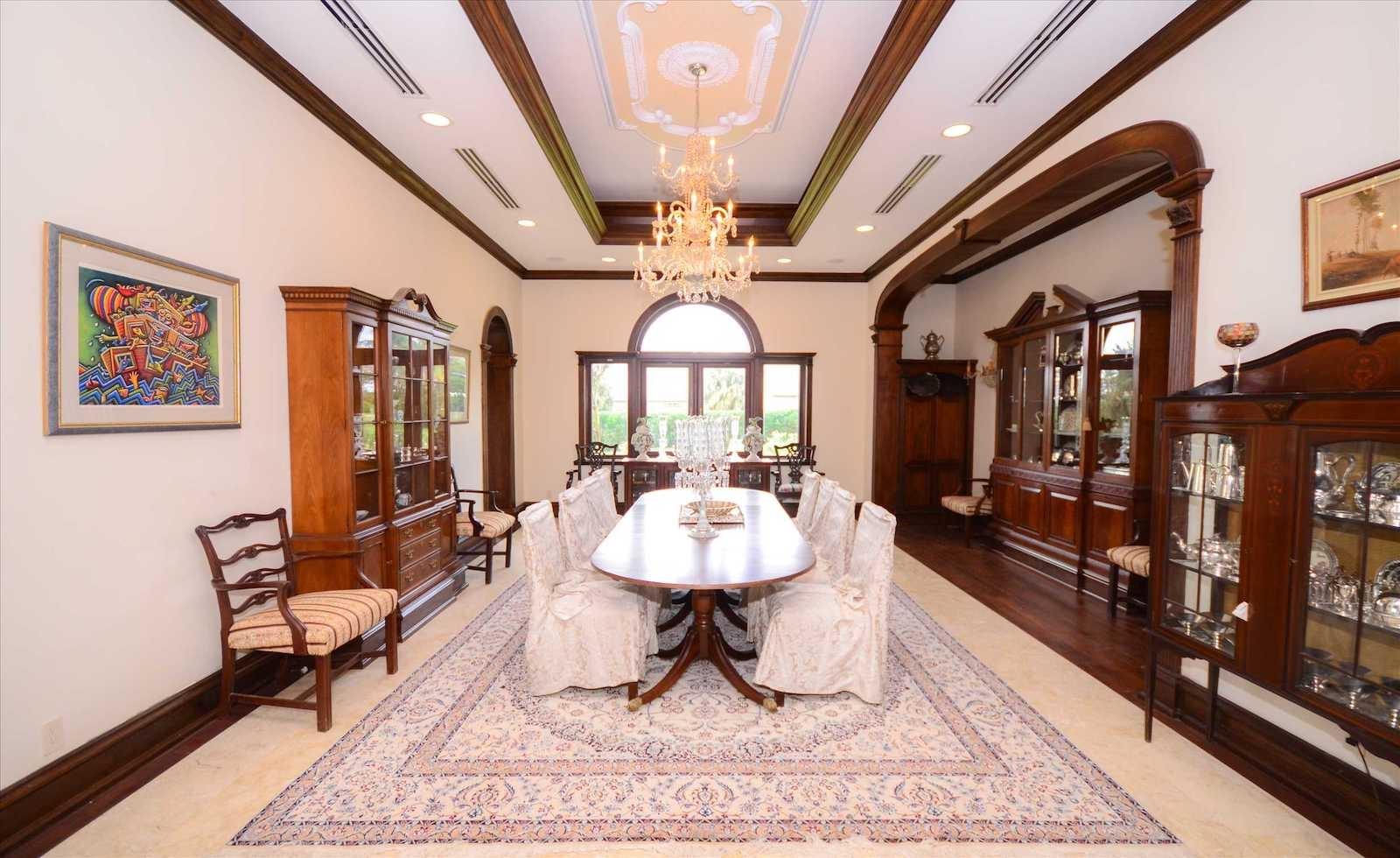 This Italian-inspired villa exudes luxury with exquisite design and finishes, including hand-inlaid wood and marble, offering a sumptuous expression of fine Italian living by the owner and designer. From a top-floor games room to a basement wine cellar, superb elements of fine Italian style abound in this one-of-a-kind home. Built along the 18-hole Tim Weiskopf championship golf course, this home overflows with wonders. With three storeys and 18,000 square feet of living space, this home with ocean and golf course views in Paradise Island’s most exclusive gated community boasts two Master Suites (one on the Ground Floor), each with His and Hers En-suite Bathrooms and walk-in closets, along with three additional Bedrooms with En-Suite Bathrooms with walk-in closets, all that present onyx and marble detailing along with Hansgrohe fixtures. The third-floor Games Room with a sofa bed and a full bath provides a sixth Bedroom. In addition to one of the Master Bedroom Suites, the Ground Floor further offers an Eat-In Kitchen with Butler’s Pantry, a Formal Living Room, and a Formal Dining.